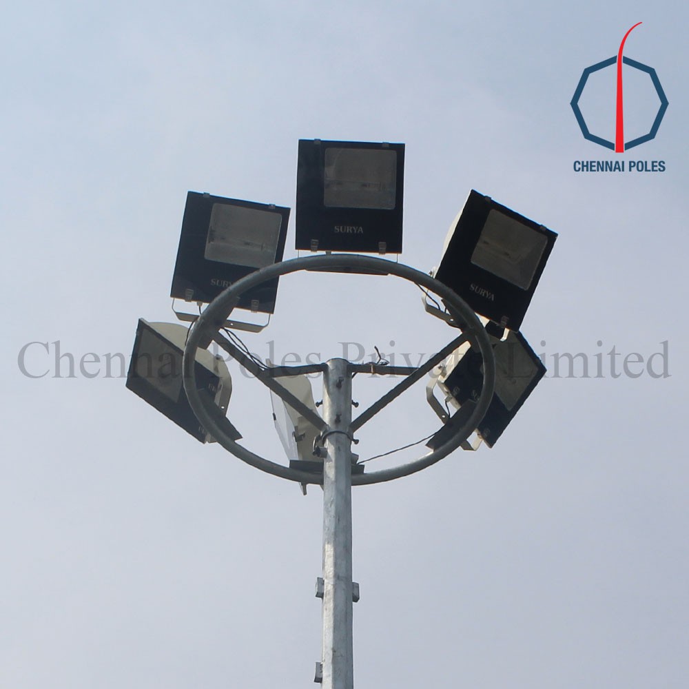 10-12 meter height ,6 luminary mounting ring mini mast with Monkey clamp Structure